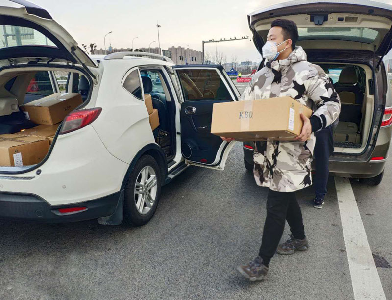 一線捐贈(zèng)產(chǎn)品做好準(zhǔn)備。前一天服務(wù)團(tuán)隊(duì)的員工們已經(jīng)到公司進(jìn)行了備貨,因疫情防控需要,不能再次離開住所,備貨