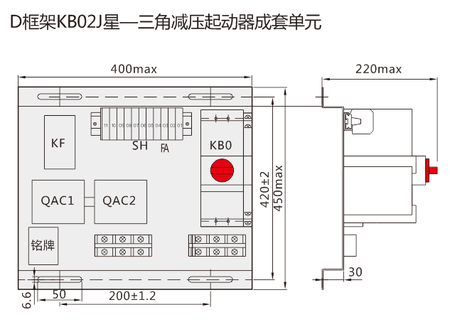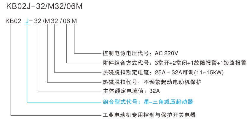 適用于電動(dòng)機(jī)星-三角減壓起動(dòng)的控制與保護(hù),以KB02產(chǎn)品作為主開(kāi)關(guān),與接觸器、時(shí)間繼電器、電氣聯(lián)鎖及控制回路組合構(gòu)成星-三角減壓起動(dòng)的控制與保護(hù)裝置。