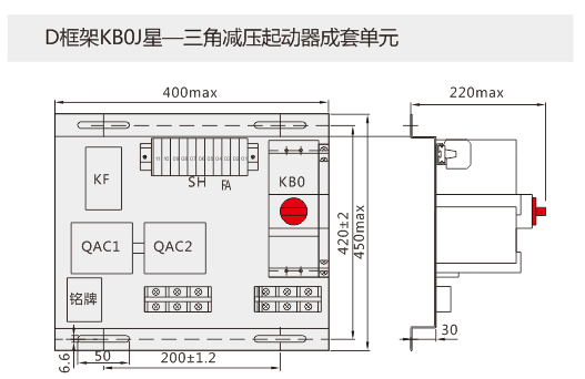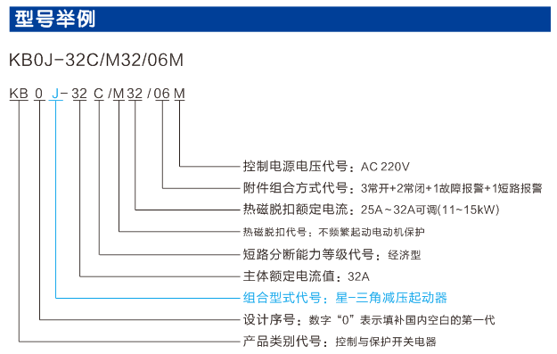以KB0作為主開關,與接觸器、時間繼電器、電氣聯(lián)鎖等附件組合,構成Y-△減壓起動器成套單元KB0J(以KB0-F消防型產品作為主開關,可構成消防型Y-△減壓起動器成套單元KB0J-F)可實現(xiàn)110kW及以下的電動機的Y-△減壓起動控制與保護。