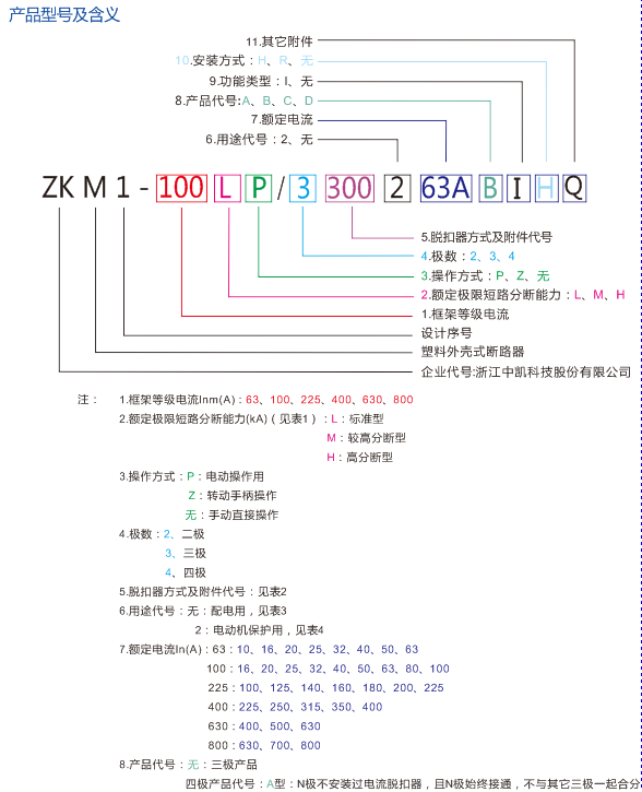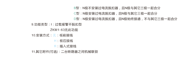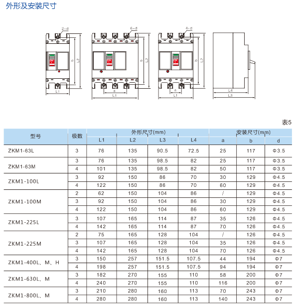 ZKM1系列塑料外殼式斷路器 (以下簡稱斷路器),其額定絕緣電壓為800V,適用于交流50Hz,額定工作電壓690V及以下(ZKM1-63為400V),額定工作電流至800A的電路中作不頻繁轉(zhuǎn)換及電動(dòng)機(jī)不頻繁起動(dòng)(ZKM1-800 無電動(dòng)機(jī)保護(hù)型)之用。斷路器具有過載、短路和欠電壓保護(hù)功能,能保護(hù)線路和電源設(shè)備不受損壞。